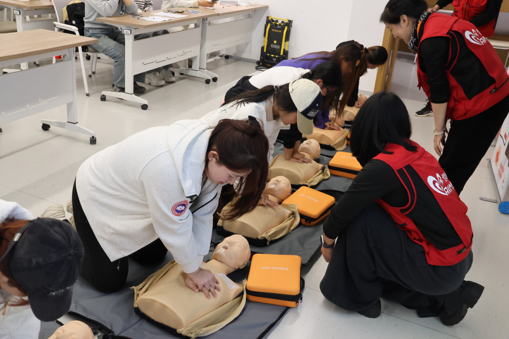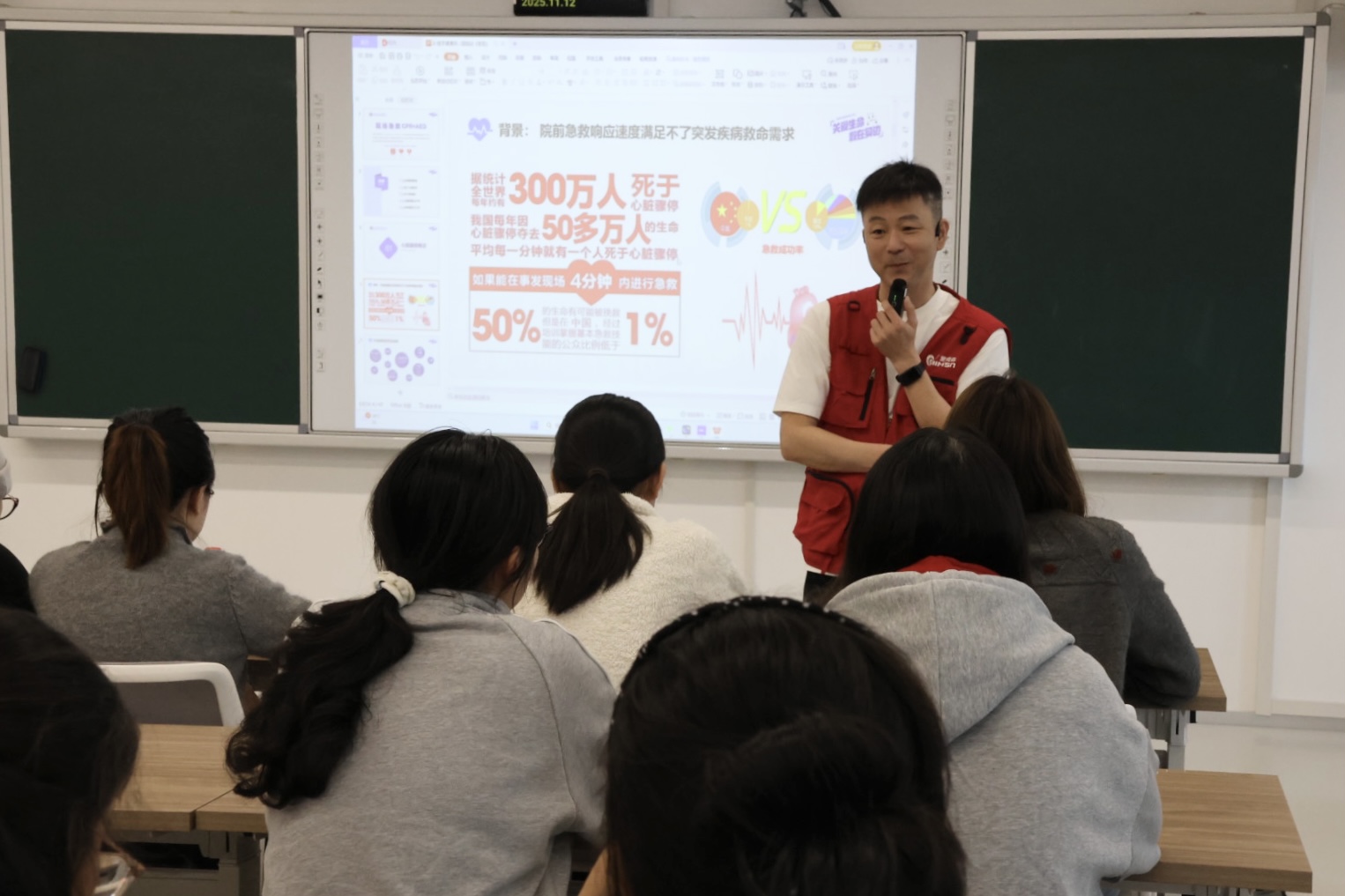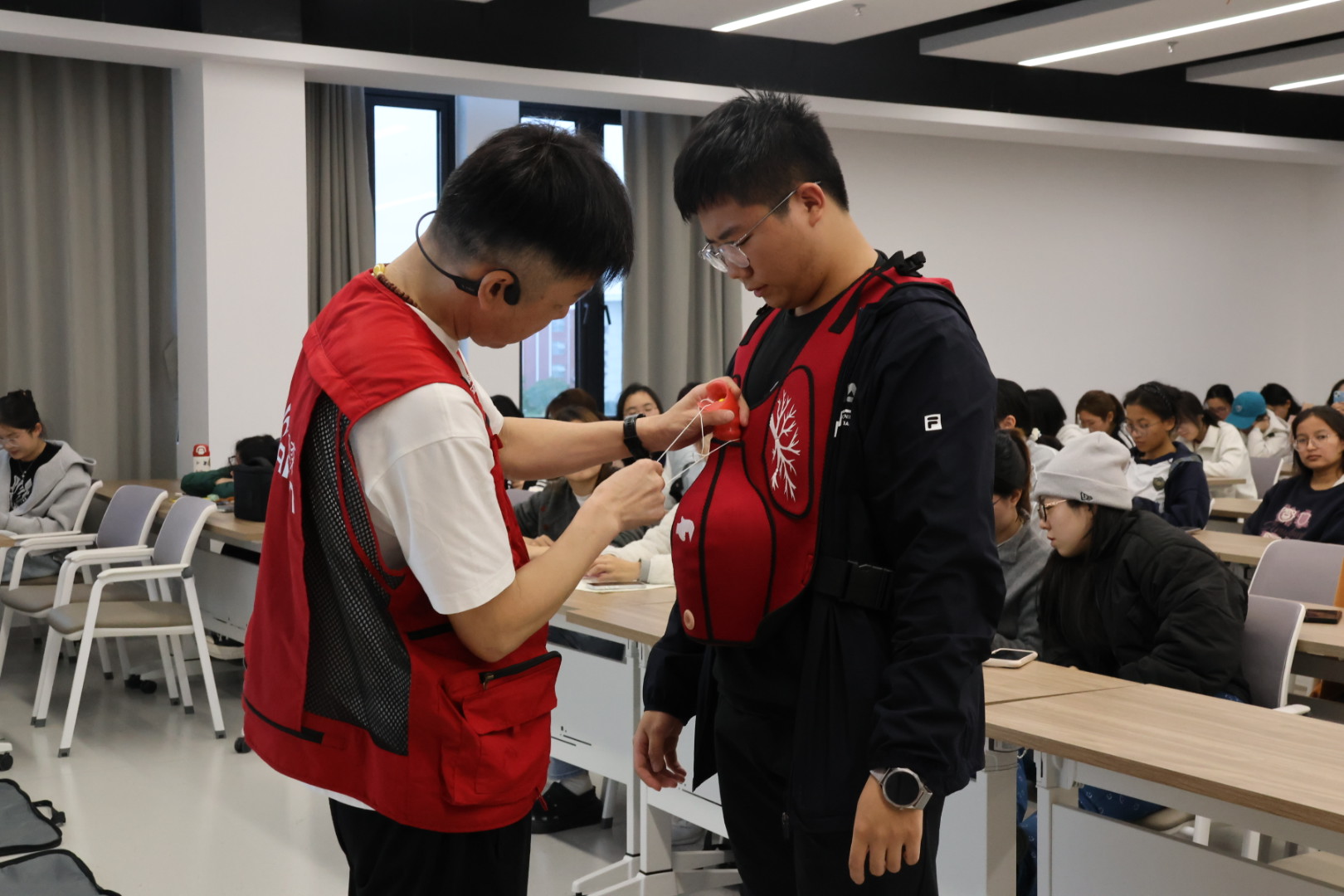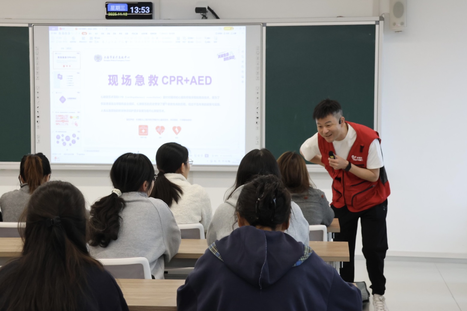 2025年11月12日下午,作为黄色小说 党委包干社区的特色活动,“5分钟社会急救”公益培训进校园在奉贤大学生发展中心顺利举办。本次活动由上海市委社会工作部等单位联合发起,面向哲法学子和奉贤第四园区具体推进,旨在全面提升师生应急救护能力。活动吸引了众多同学积极参与,共同为校园安全防线筑起坚实屏障。