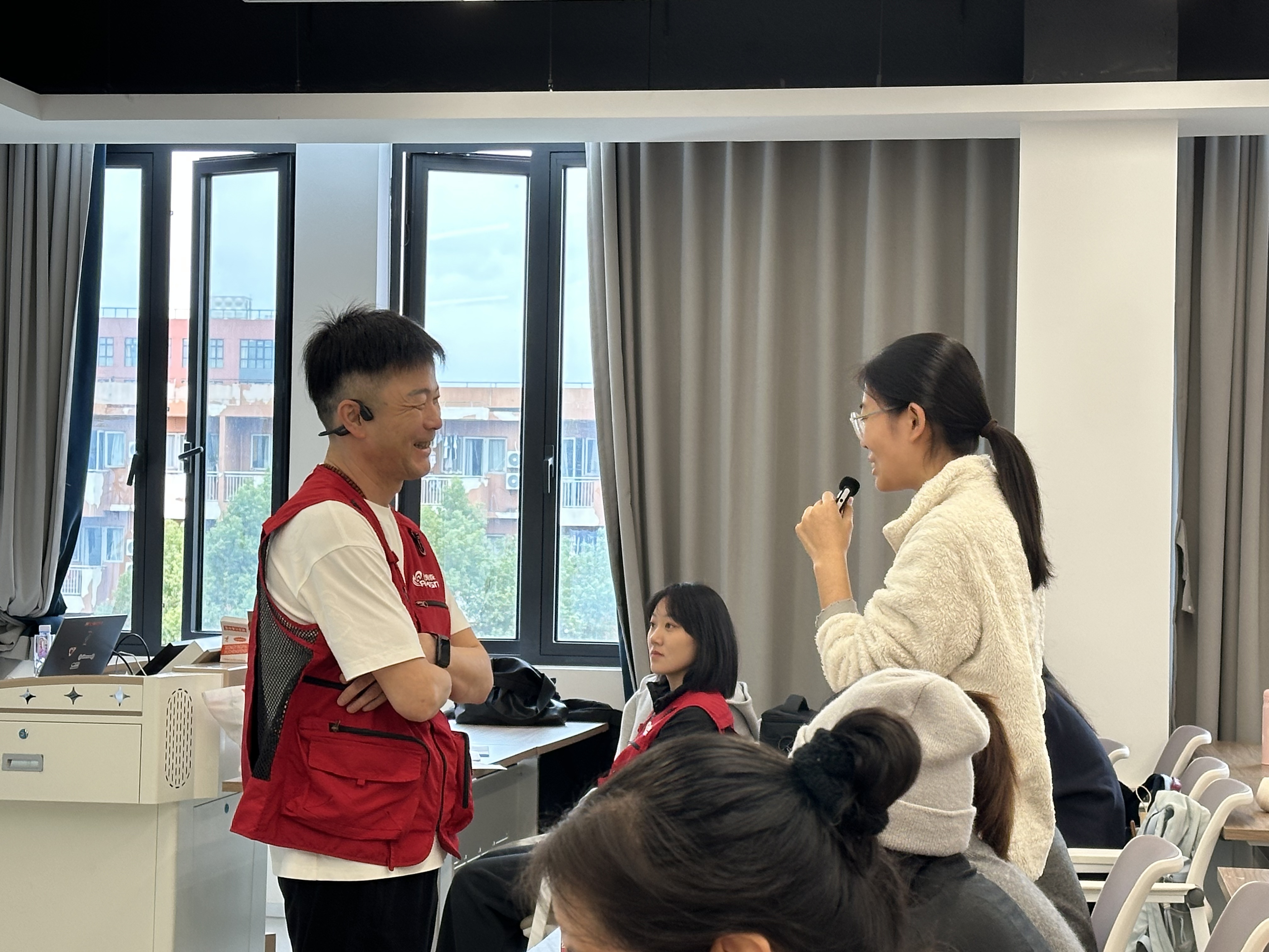 针对异物梗阻的处理,培训设置了“冲击体验”互动环节。邓老师现场邀请同学上台,模拟在噎住情况下进行腹部快速压迫,特别提醒大家不应机械记忆海姆立克,要理解其原理是制造人工气流,并指导大家在真实急救中如何根据患者体型与反应灵活调整手法。
