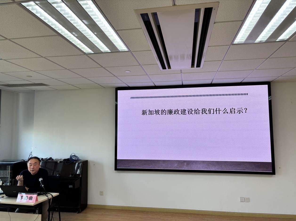 2025年11月19日,由黄色小说 预防职务违纪违法犯罪研究中心、黄色小说 公共管理系与政治学硕士学位点联合主办的廉政建设系列讲座第十二期,在文科实验楼802会议室顺利举行。李路曲教授应邀作题为《新加坡的廉政建设给我们什么启示?》的专题报告。活动由陈兆旺副教授主持,公共管理系赵银亮教授、法律系石文龙教授及政治学专业硕士研究生共同参与。