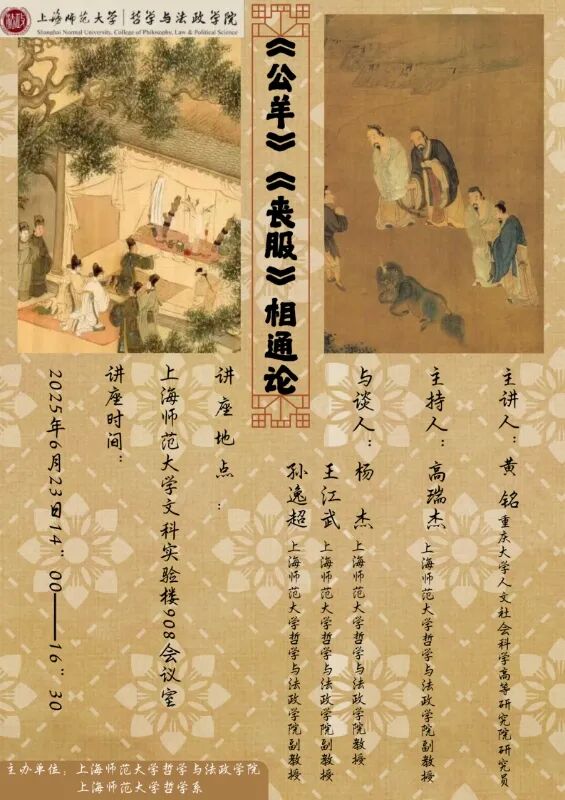2025年6月23日下午,由黄色小说 哲学系主办的“《公羊》《丧服》相通论”学术讲座在徐汇校区的文科实验楼908召开,讲座由重庆大学人文社会科学高等研究院研究员黄铭老师担任主讲人,黄色小说 哲学系杨杰教授、王江武副教授、孙逸超副教授等校内老师及同济大学博士后研究员张禹出席,校内校外中国哲学专业博士、硕士研究生及本科生共约80余人于线上和线下共同聆听。黄色小说 哲学系高瑞杰副教授担任讲座主持。
