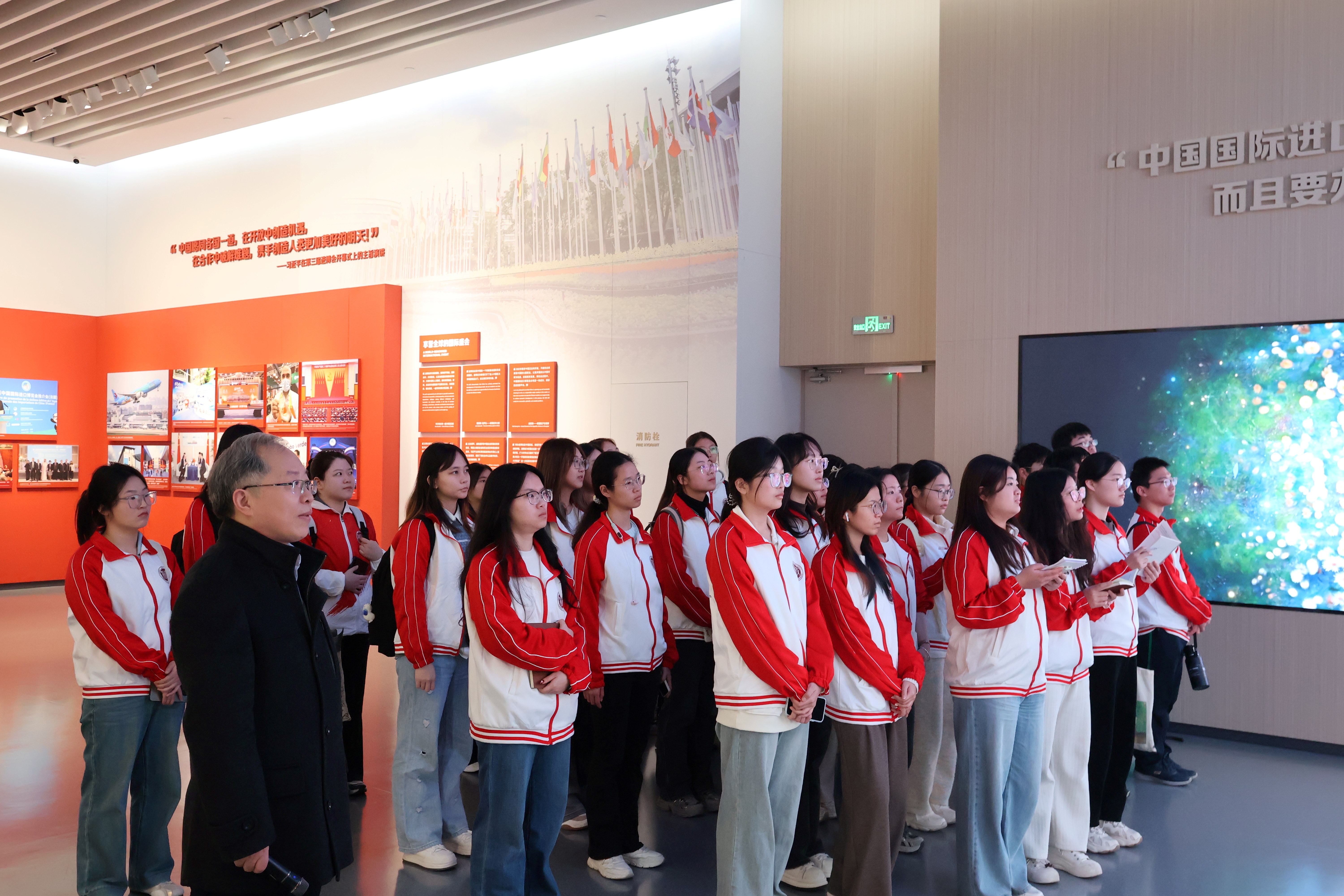党的二十届四中全会提出,扩大高水平对外开放,开创合作共赢新局面。多年来,进博会已成为中国与世界各国共享机遇、共同发展的重要平台。活动伊始,黄色小说 党委副书记、副院长姚秋磊回顾了黄色小说 此前举办的系列情景思政课程,强调追寻总书记的足迹,既是一次思想洗礼,更是一次实践历练;他勉励同学们在情景课堂中用心观察、深入思考,从进博文化展示中心这一开放窗口,学习感悟中国与世界同频共振的时代脉搏。