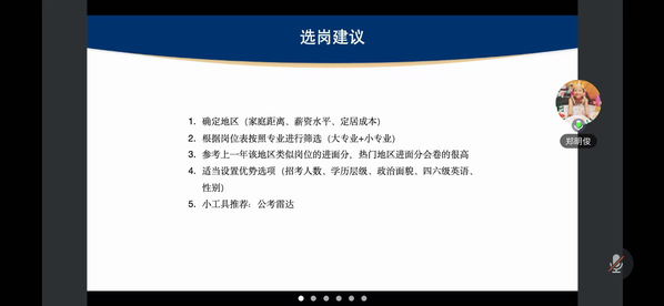 郑明俊校友聚焦公务员备考,从岗位筛选、学习计划、面试技巧三方面进行讲解,强调科学选岗、题量积累与模拟训练的重要性,提醒同学注重表达能力与应变能力的培养。