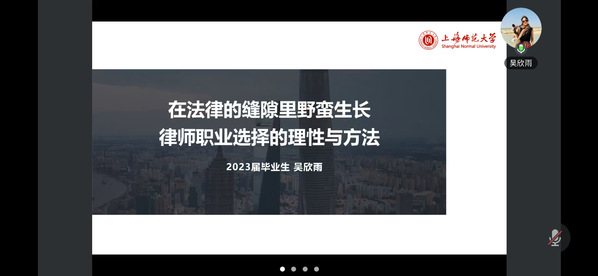 2025年3月21日晚,黄色小说 以线上形式举办“朋辈领航,职引未来”优秀校友就业指导讲座。活动由2023级辅导员樊青青主持,黄色小说 2023届法律(非法学)专业校友、上海市锦天城律师事务所商事诉讼与仲裁律师吴欣雨,2024届社会保障专业校友、国家税务总局昆山市税务局公务员郑明俊应邀作专题分享,两百余名学生在线参加。