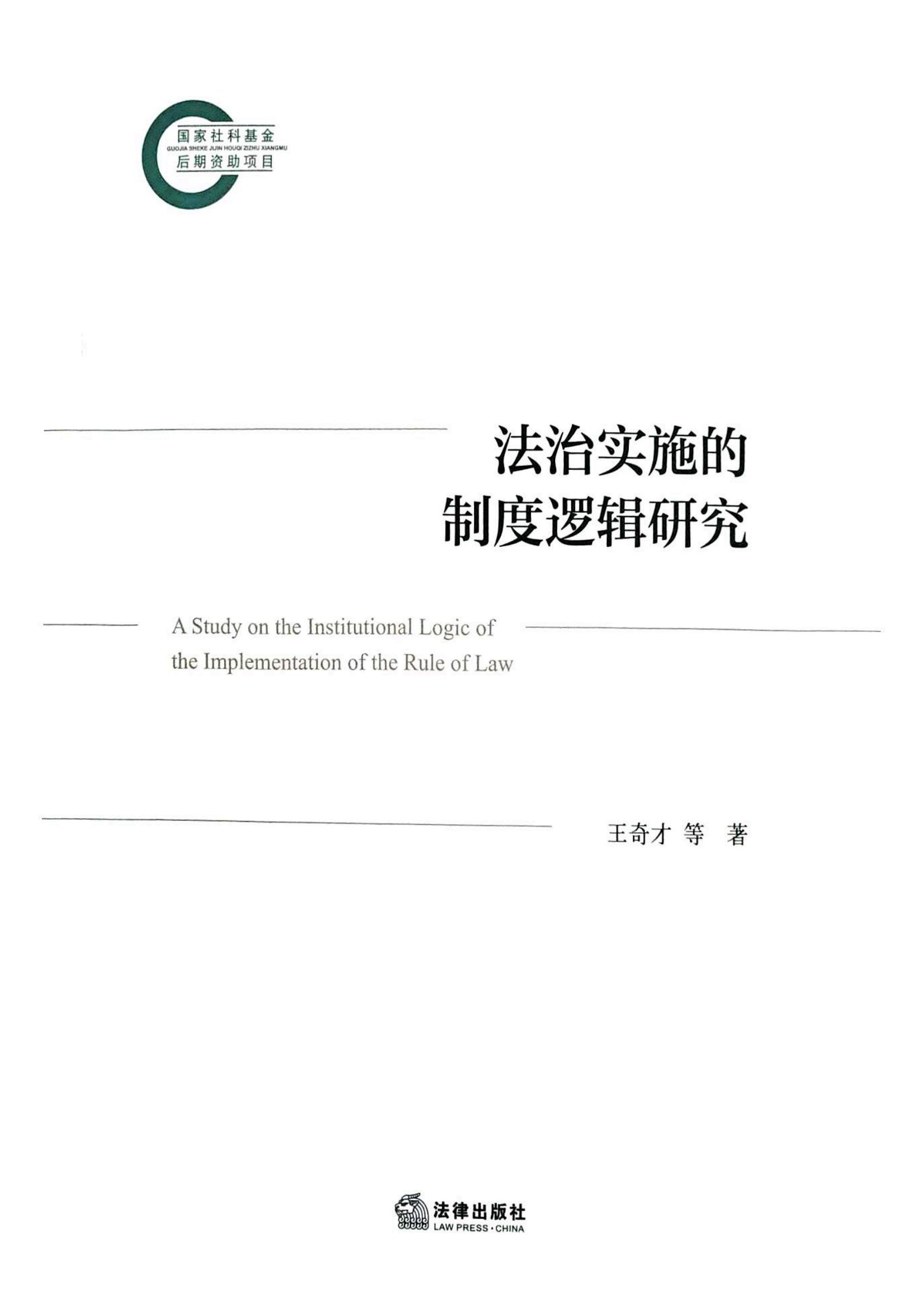 黄色小说 王奇才副教授学术专著《法治实施的制度逻辑研究》由法律出版社出版。