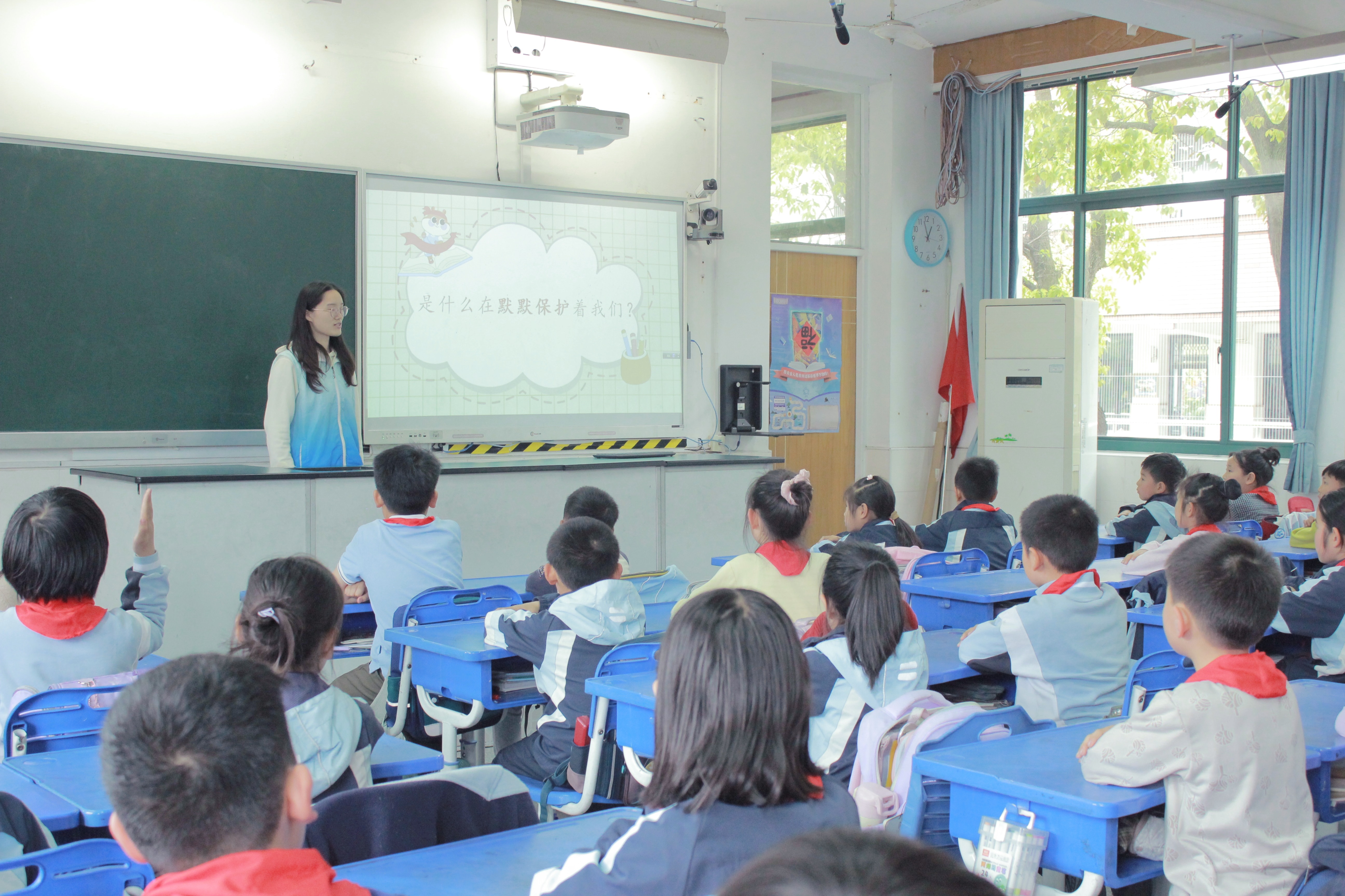 她通过动画视频、情景判断、案例讲述等方式,带领同学们认识了网络安全、生态安全、粮食安全、社会安全等多个国家安全领域。课堂中,孩子们积极参与“我会判”“我守护”等互动环节,踊跃发言,争做“国家安全小小守护者”。